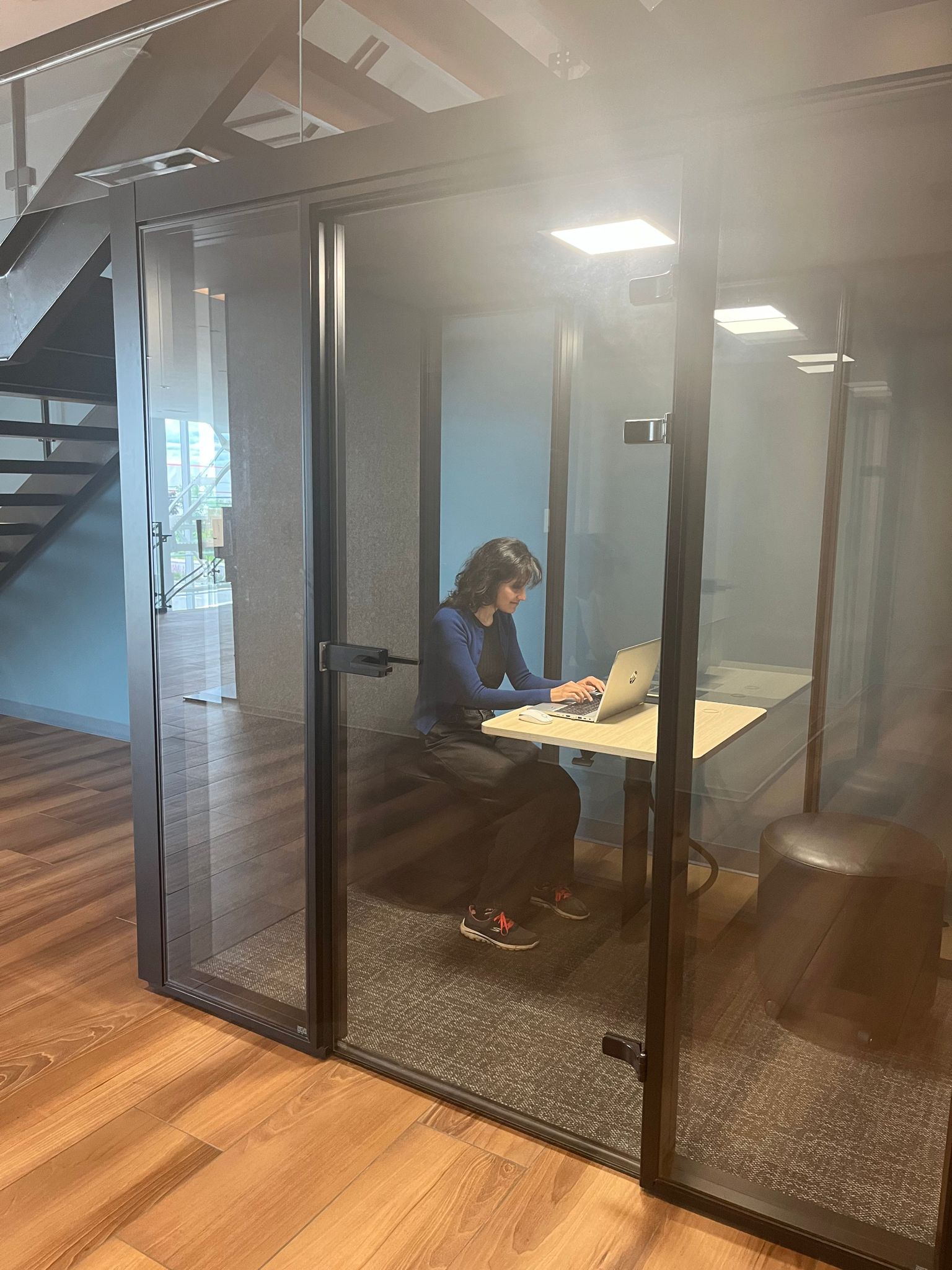 With beverage in hand, we are in work mode. That could mean catching up on emails, starting a creative project, or polishing technical details. Should you need privacy or quiet, there are ZITTO freestanding pods on two of the floors that employees may use briefly. I myself have taken advantage of it numerous times, including as I type this.