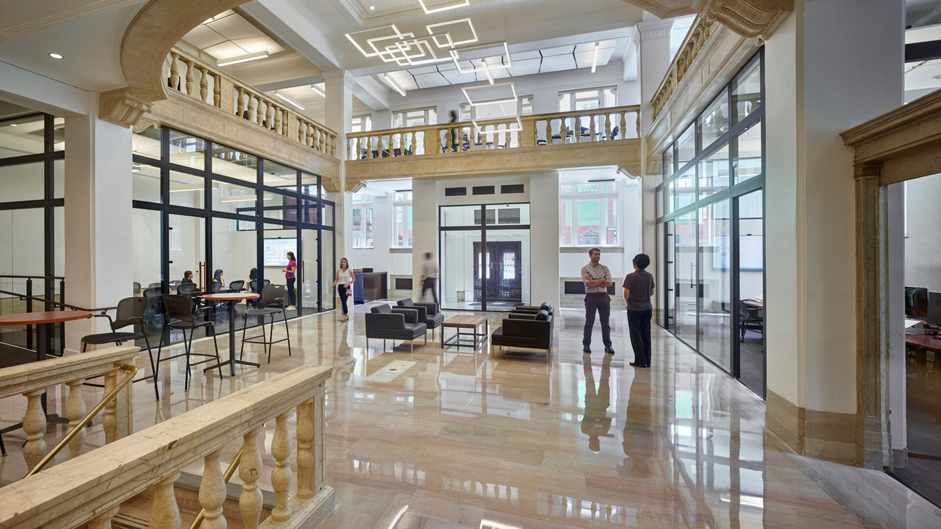 Linode, a rapidly growing cloud hosting provider in Philadelphia, PA needed new offices but wanted to make sure they matched the unique character of the business. They found everything they needed and more in the iconic Corn Exchange Bank building. With MIMO glass walls system and innovative designs, Linode was able to create a stunning, unique, naturally lit, modern office that far surpasses the boring, boxy alternatives.