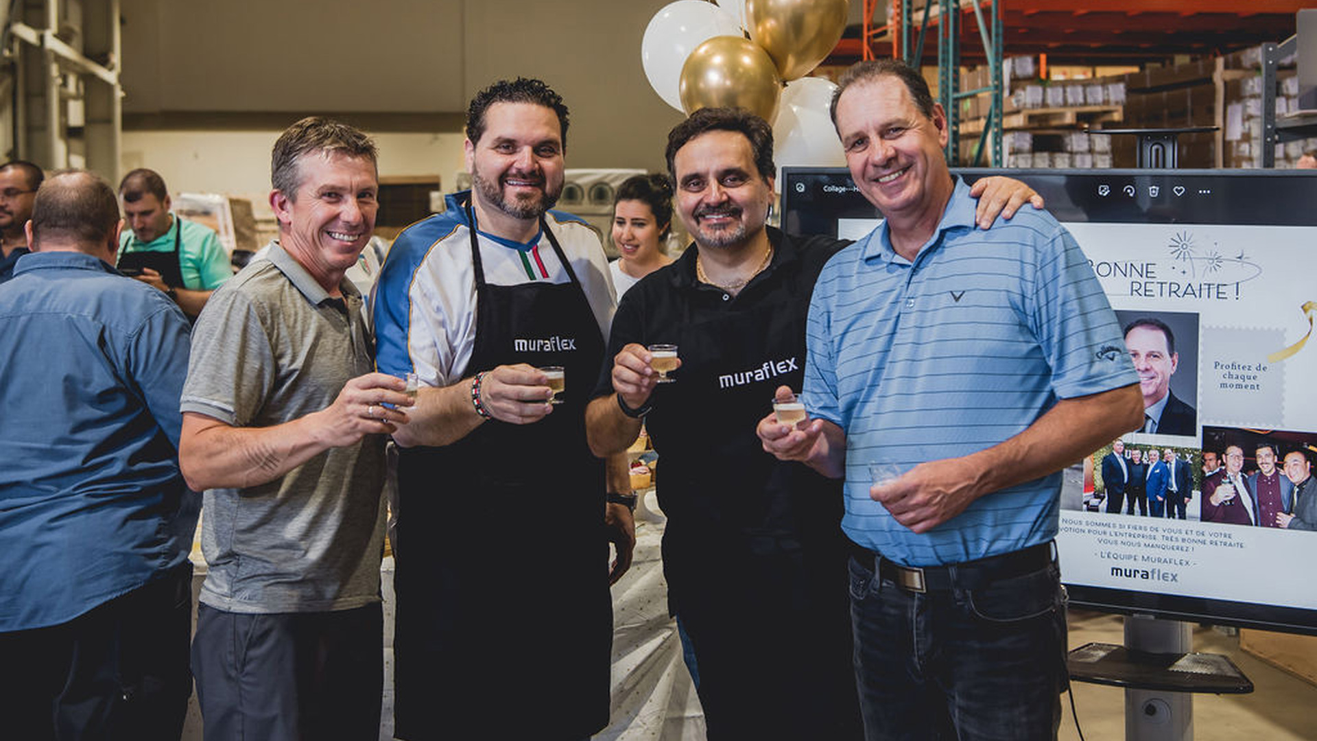 Pour terminer, nous félicitons Jean-Pierre pour toutes ses réalisations et lui adressons nos plus sincères remerciements pour son dévouement et sa contribution à l’équipe qui a fait de Muraflex l’entreprise prospère qu’elle est aujourd’hui.