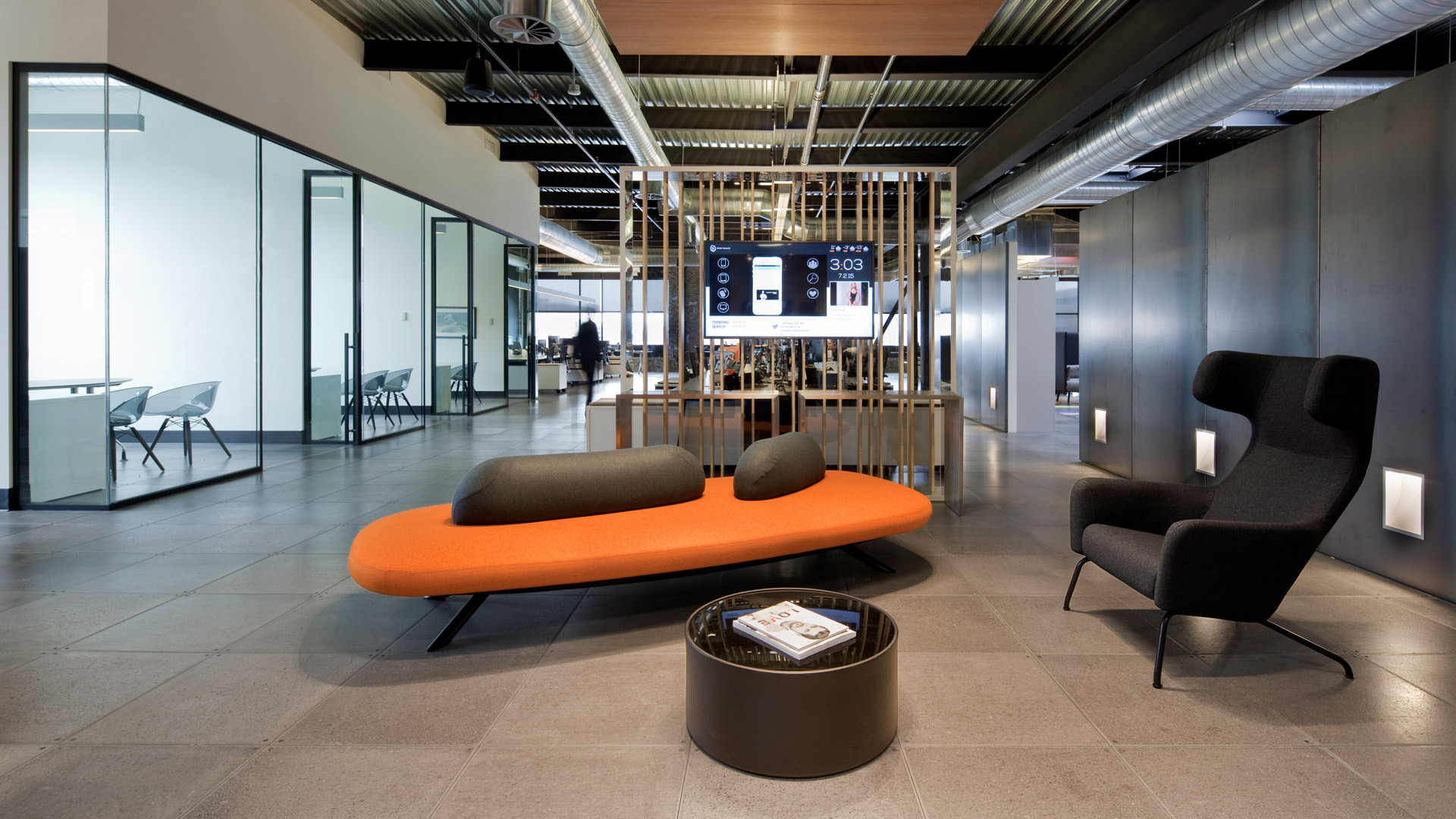 Waiting areas with glazed walls allow a glimpse into the inner world of a company, whether that's the excitement of a brainstorming session or a conclusive meeting. A demountable wall like MIMO serves as a winning solution for interaction, collaboration, and creativity. Prospective clients and employees have a glimpse into the inner workings of a company, and thus a connection to your brand. This media company has chosen not only the same wall system but similar furniture and layout as a commitment to their trademark style.