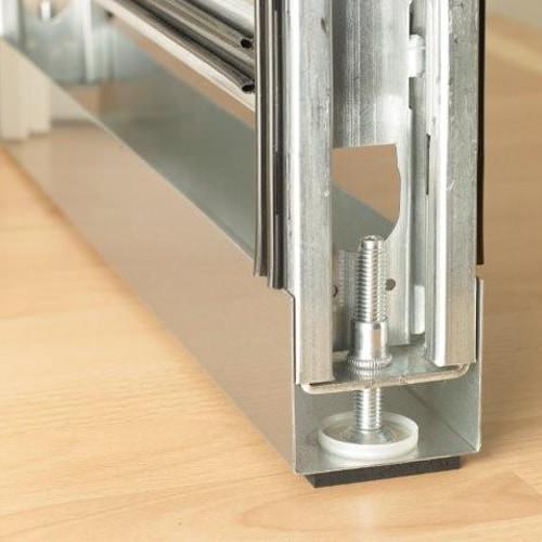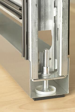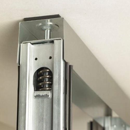 PLANIKA™ sill and ceiling connectors are fully adjustable, easily demountable and can absorb any structural condition. Uprights are held in place at the sill with an adjustable pressure stud bolt. Ceiling upper springs or brackets can be applied for bulkhead conditions with the pressure mechanism or fastened with screws.