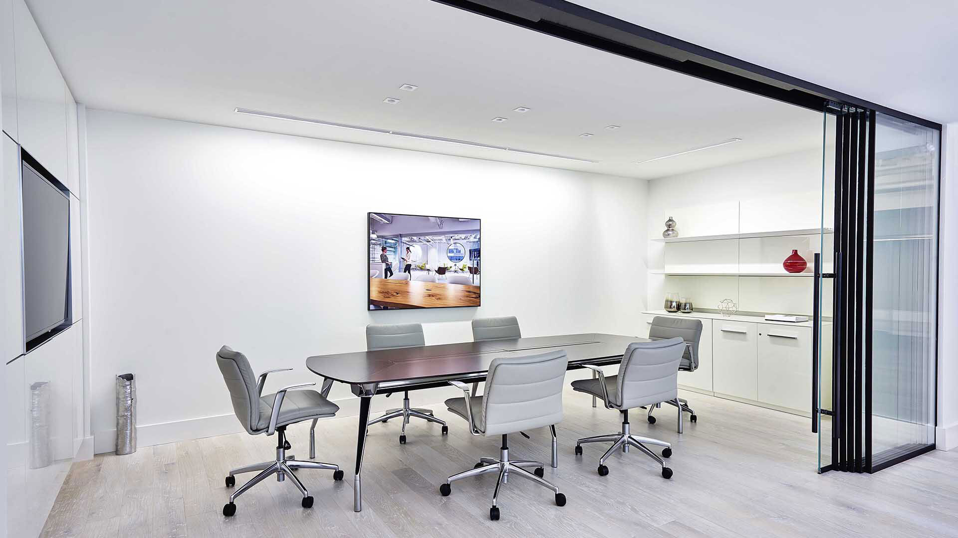Meeting room: EXPO in the black anodized finish and ladder pull hardware. (c) photo by Muraflex