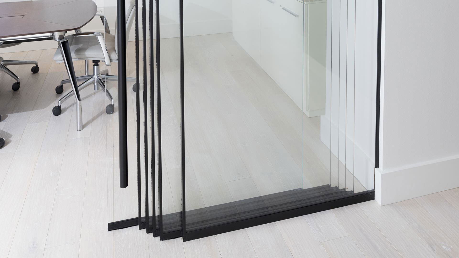 Meeting room: EXPO in the black anodized finish and ladder pull hardware. Position closed (c) photo by Muraflex