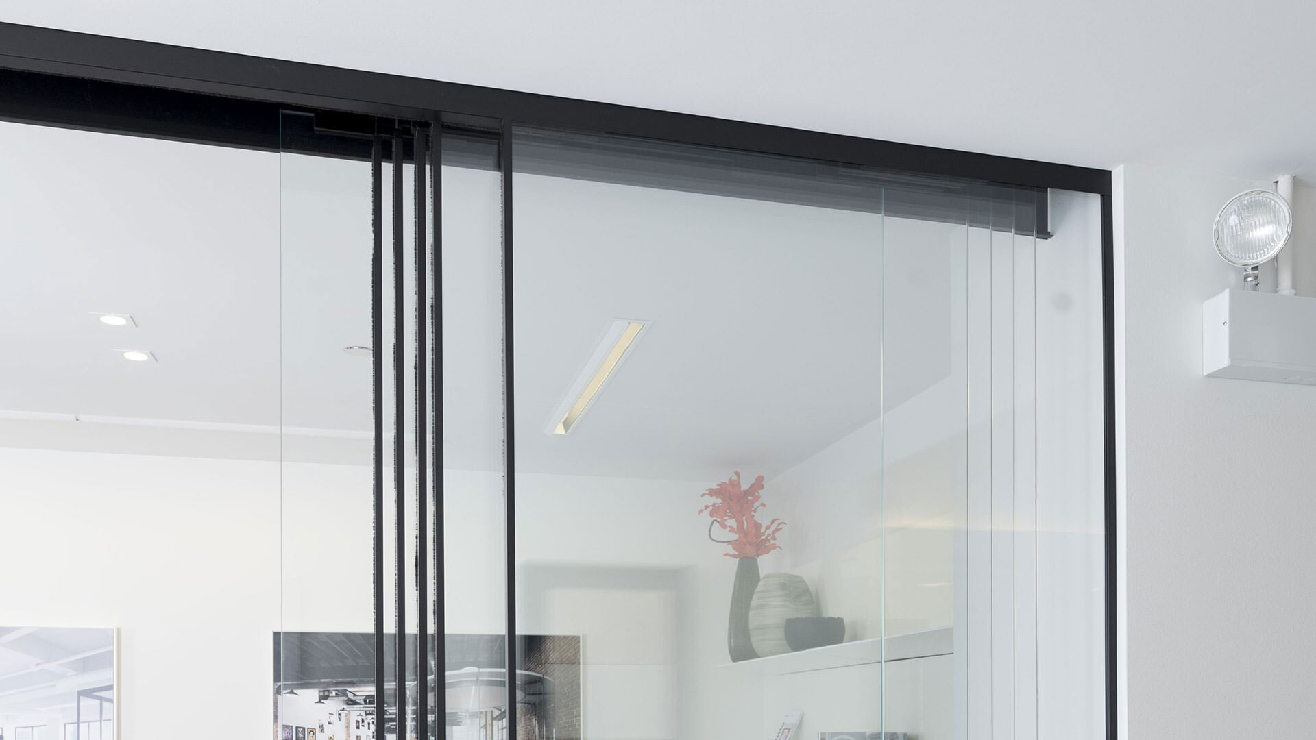 Meeting room: EXPO in the black anodized profiles. Open position. MIMO office front glass wall (left). (c) photo by Claude-Simon Langlois