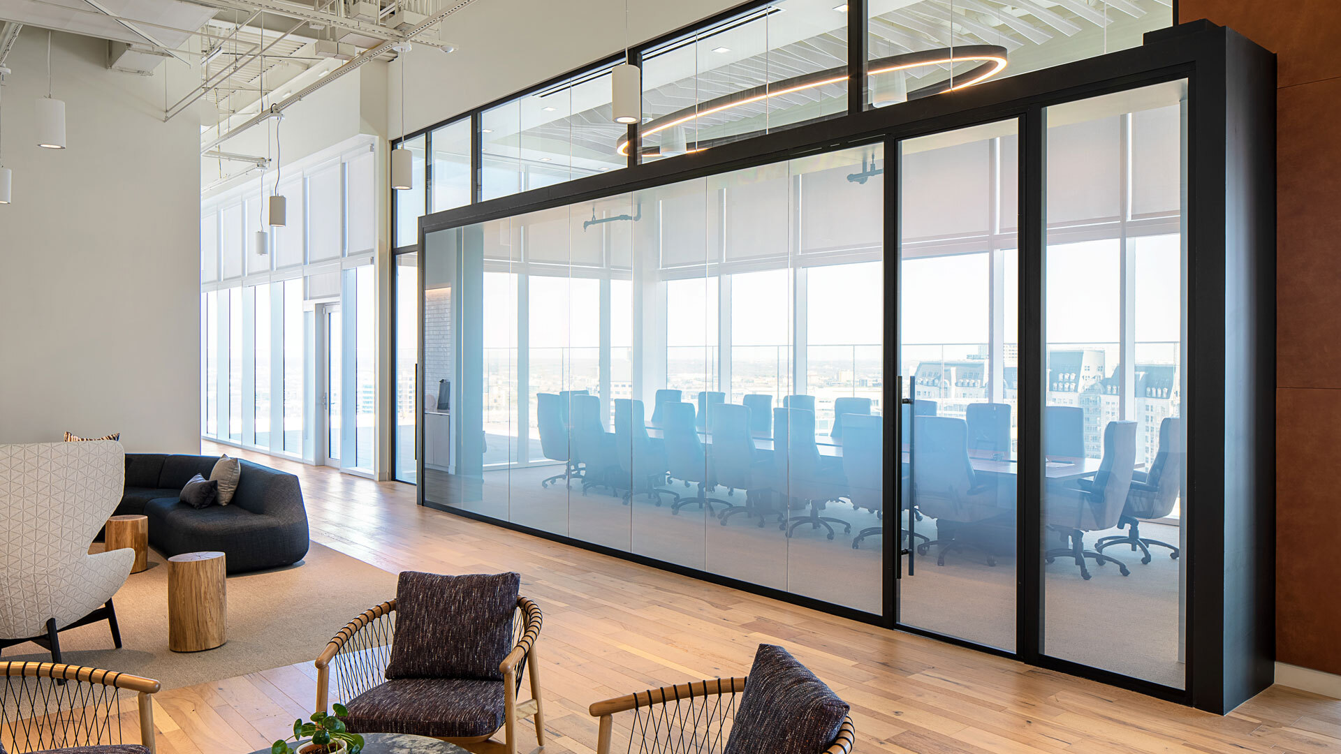Conference room. FINO Curved glass in the black anodized finish. (c) photo by Chris Leonard