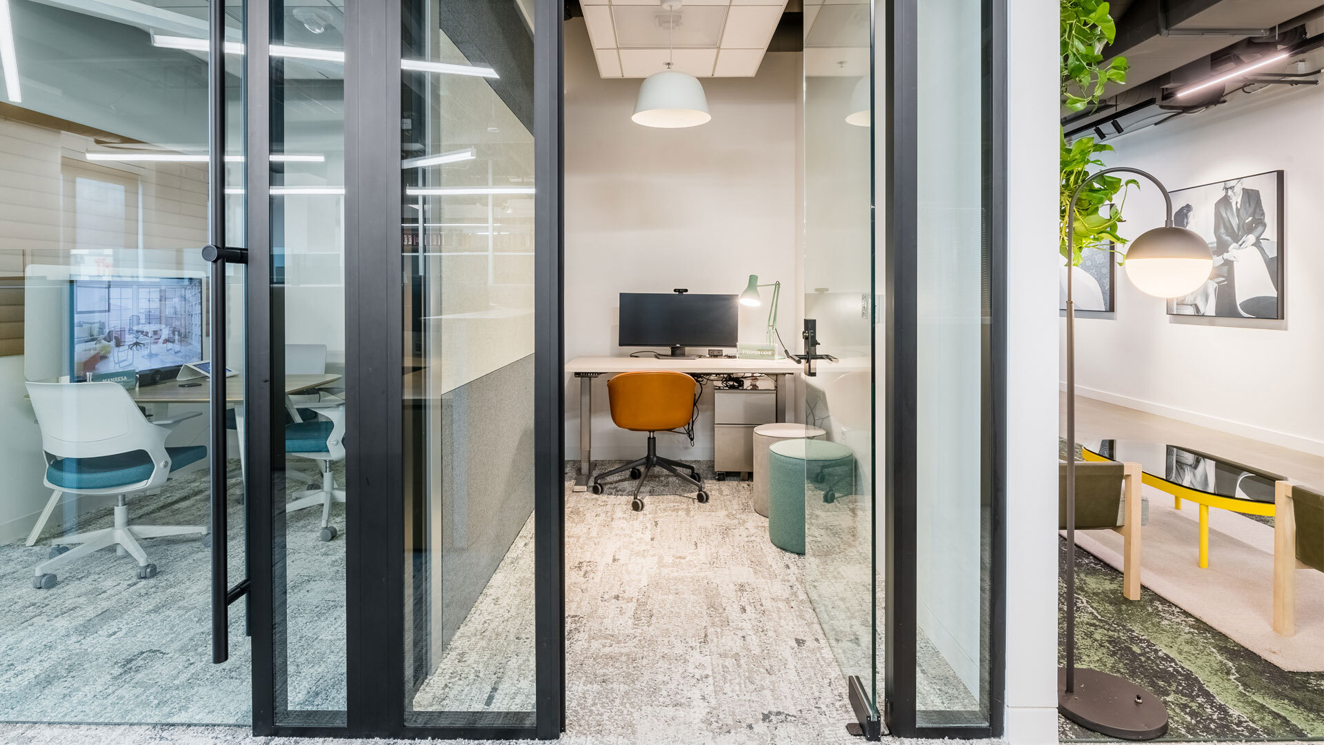 HALLWAY: Offices with QUADRO walls and doors with ladder pulls in closed positions.