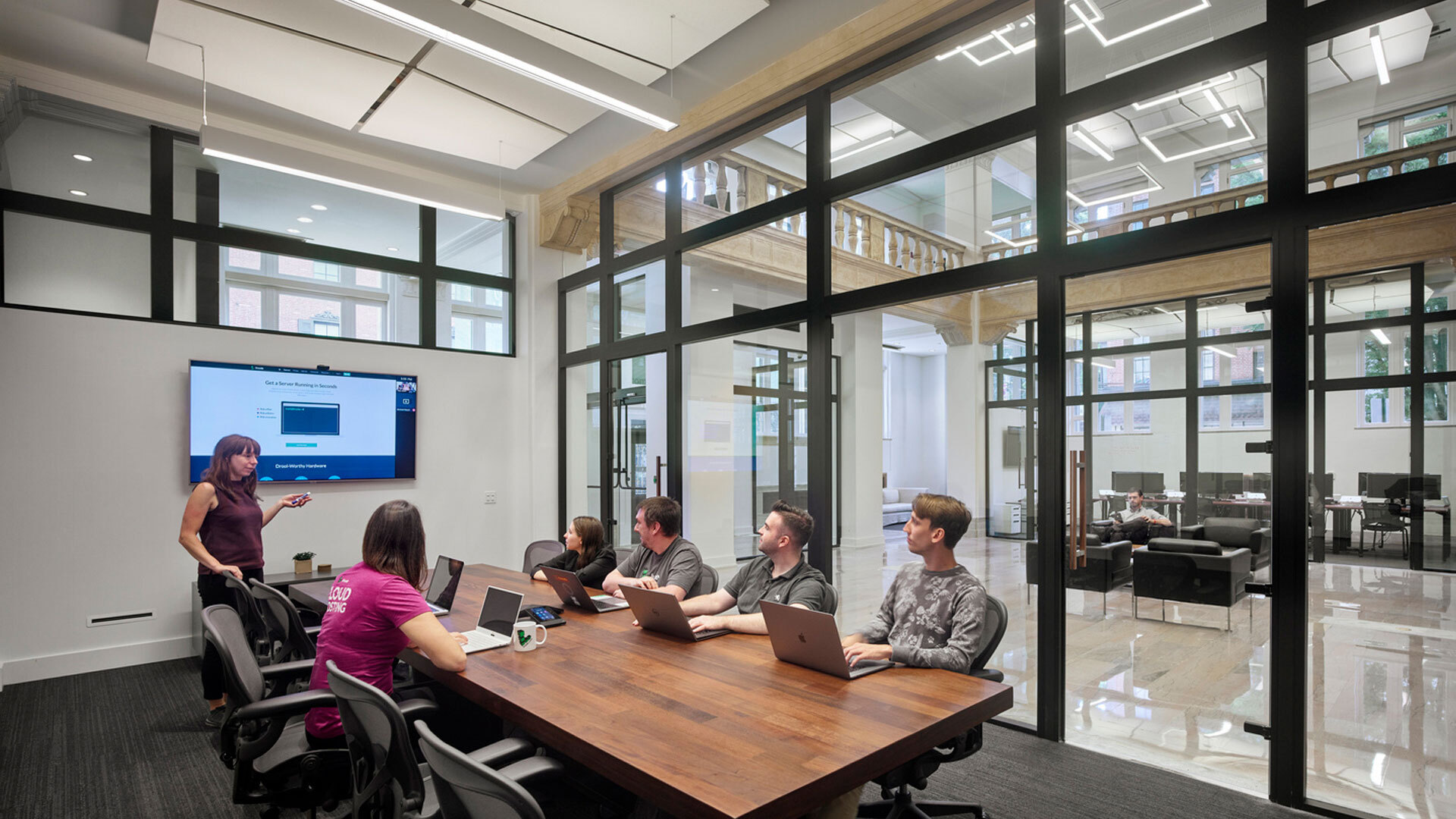 Linode, a rapidly growing cloud hosting provider in Philadelphia, PA needed new offices but wanted to make sure they matched the unique character of the business. They found everything they needed and more in the iconic Corn Exchange Bank building. With MIMO glass walls system and innovative designs, Linode was able to create a stunning, unique, naturally lit, modern office that far surpasses the boring, boxy alternatives.