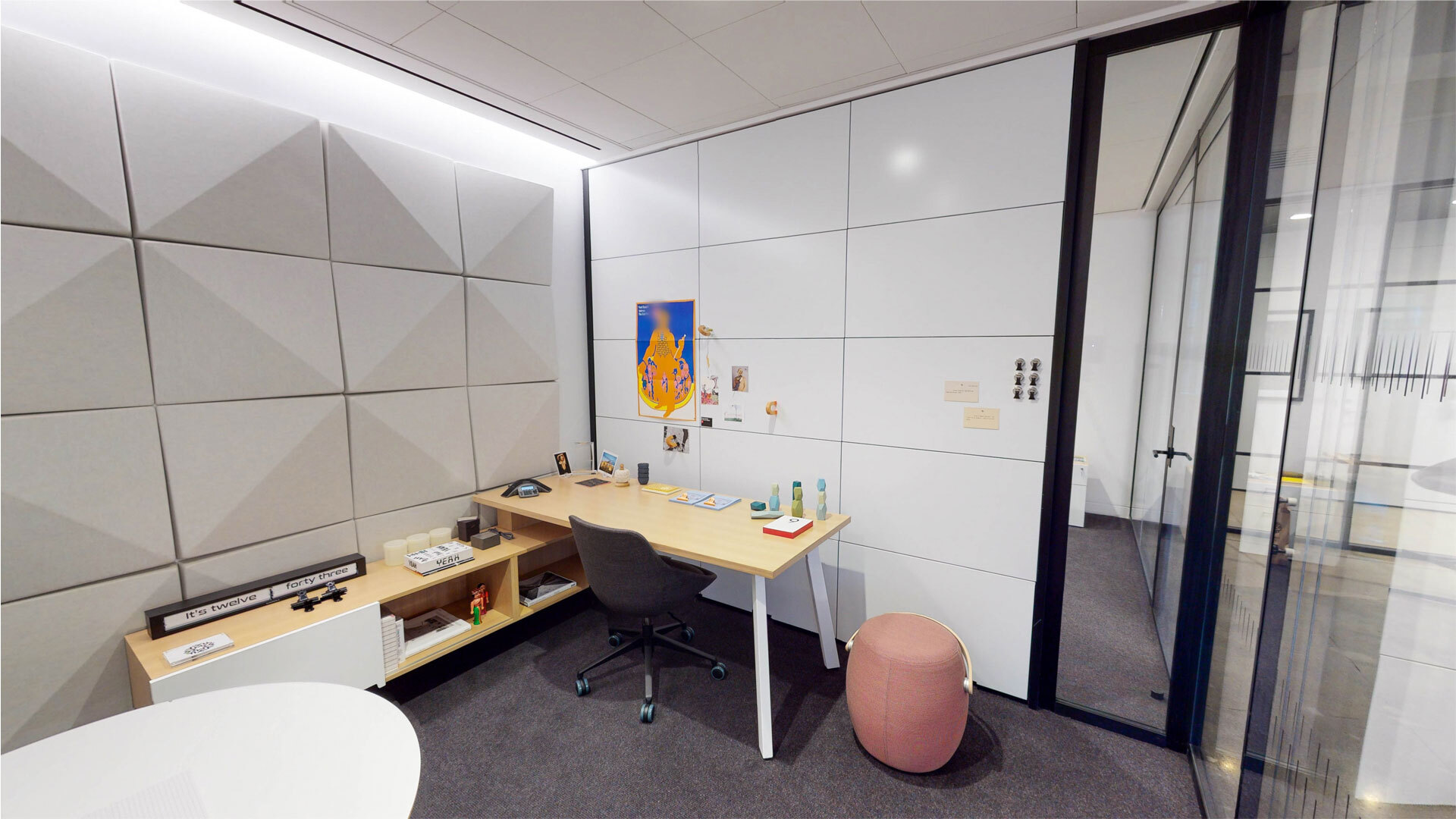 For their office space, they opted for FINO light oak wood veneer, which adds a warm, inviting touch that enhances productivity and comfort while integrating seamlessly with modern room schedulers for efficient space management.