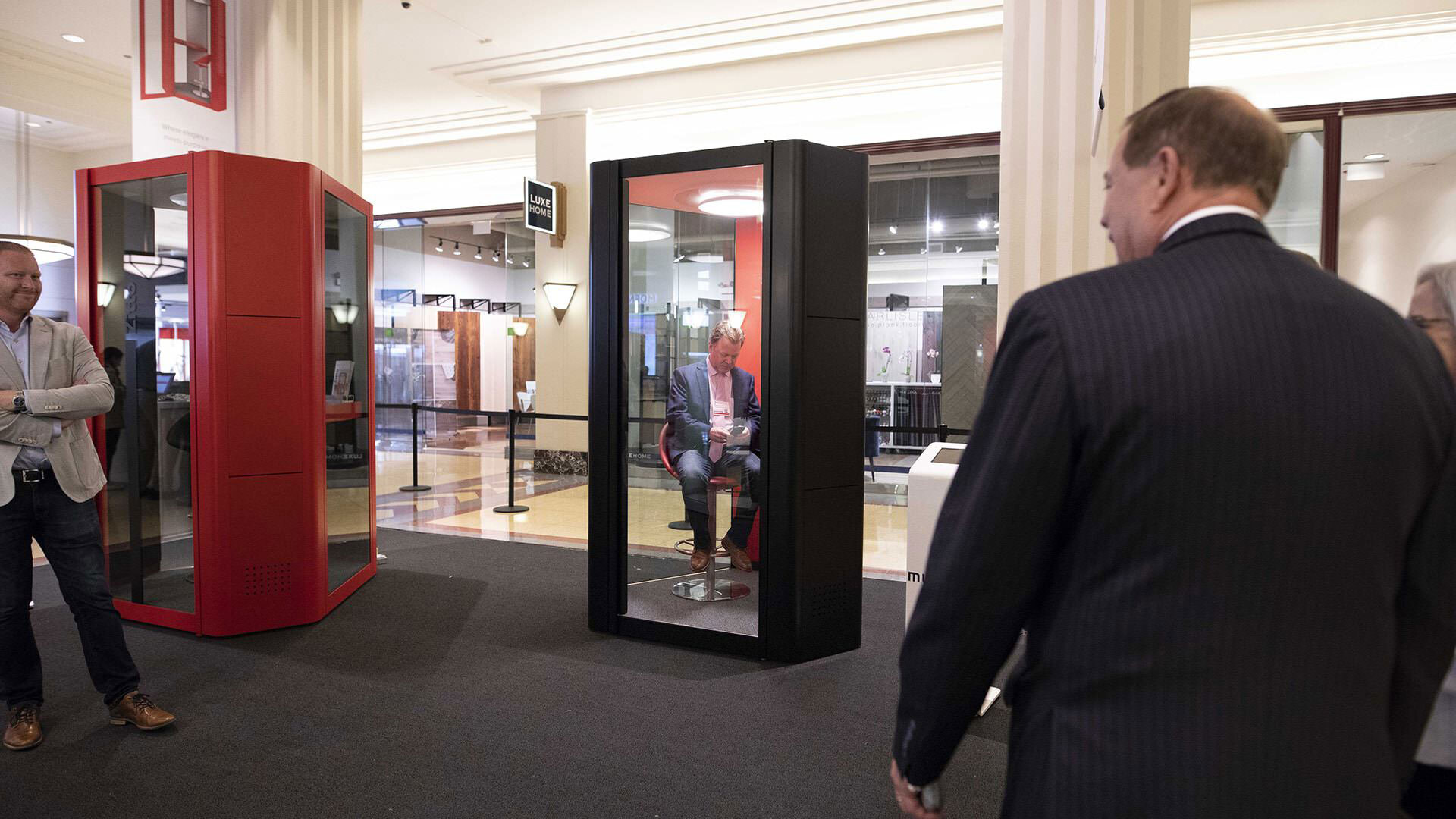 Muraflex is proud to be a part of the Merchandise Mart story with our permanent showroom on the 11th floor. Continuously changing to showcase our most recent developments. In 2018, in North Lobby, we presented freestanding pod ZITTO. For the debut day, we showcased two ZITTO sizes: for one person, and for 2 people.