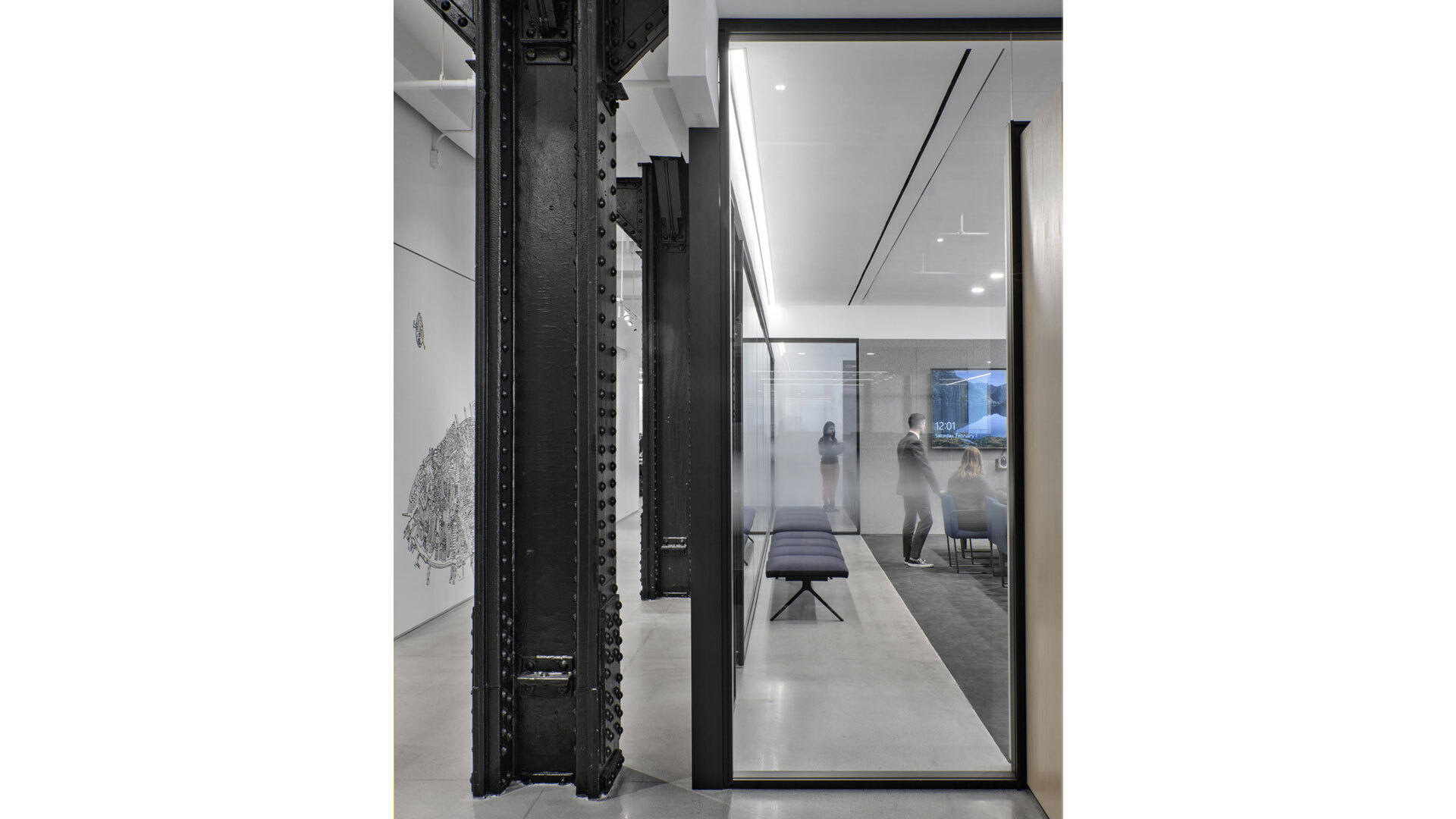 HALLWAY: Offices with QUADRO walls and doors with ladder pulls in closed positions.