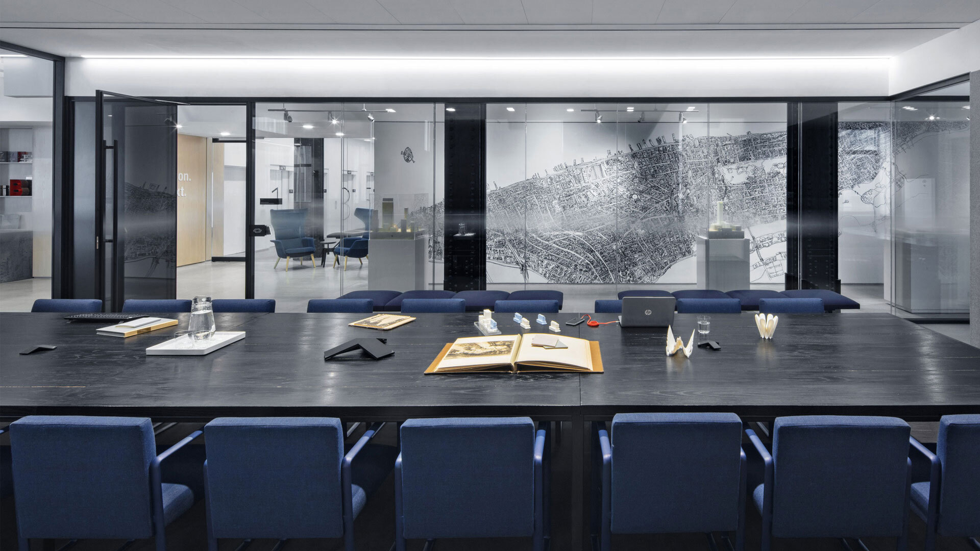 Meeting room: QUADRO Brushed black anodized finish and walnut snap-on trim. (c) photo by Garrett Rowland