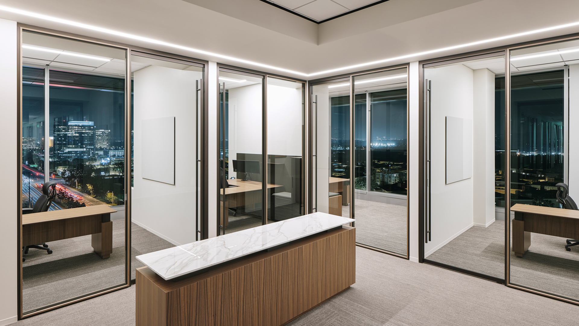 QUADRO™ is designed with elegance and prestige in mind. With its recessed reveal, QUADRO™ creates a picture frame effect highlighting your office space like a work of art.