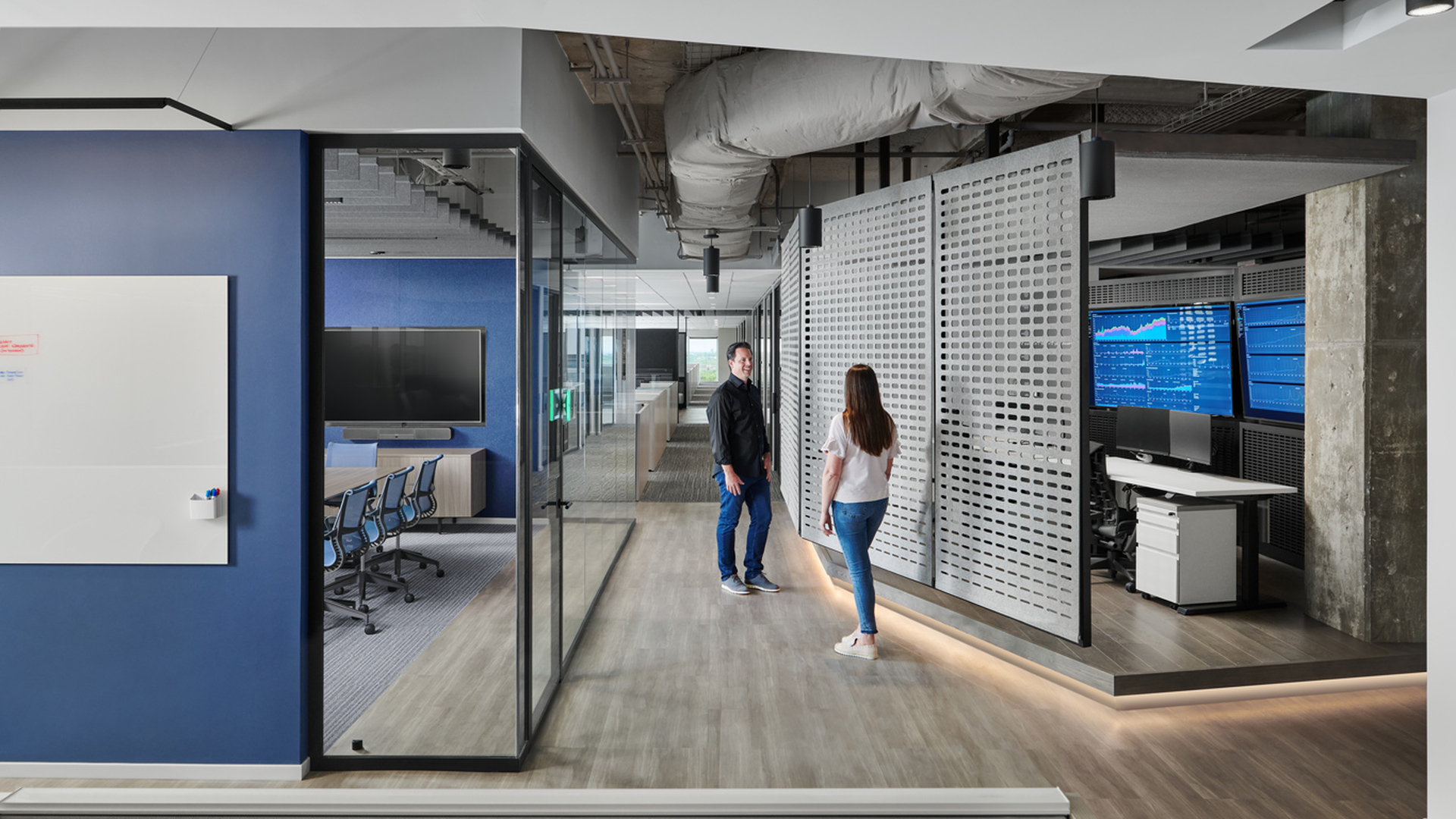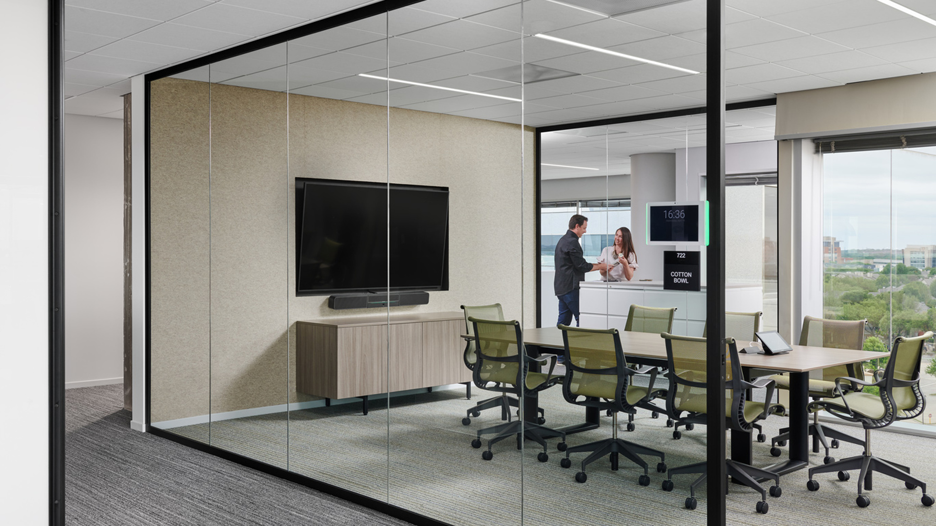 Les murs FINO créent un mélange parfait de collaboration et d’intimité, tout en augmentant le passage de’ la lumière naturelle. Dans cet exemple, les salles de réunion n’ont qu’un accès minimal les unes aux autres, tandis que le bureau lui-même peut bénéficier de la lumière naturelle qui passe sous de multiples angles.