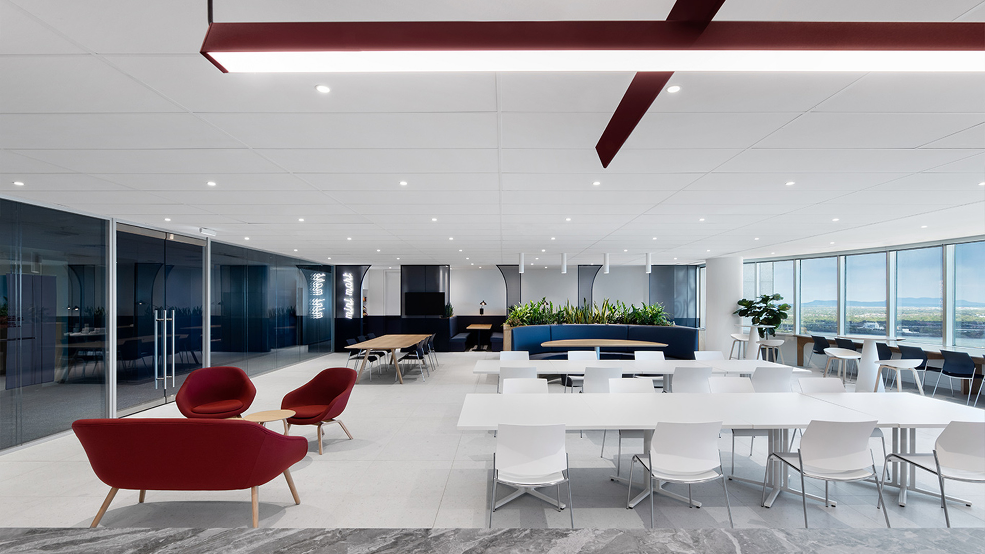 Les bureaux et les pièces situés de l’autre côté utilisent la même conception dans tout l’espace afin de conserver un sentiment d’uniformité et de symétrie.