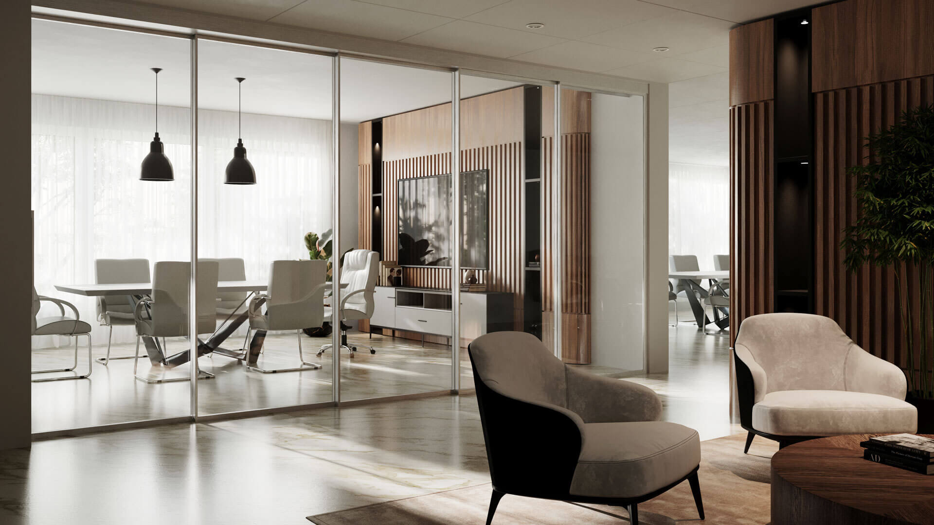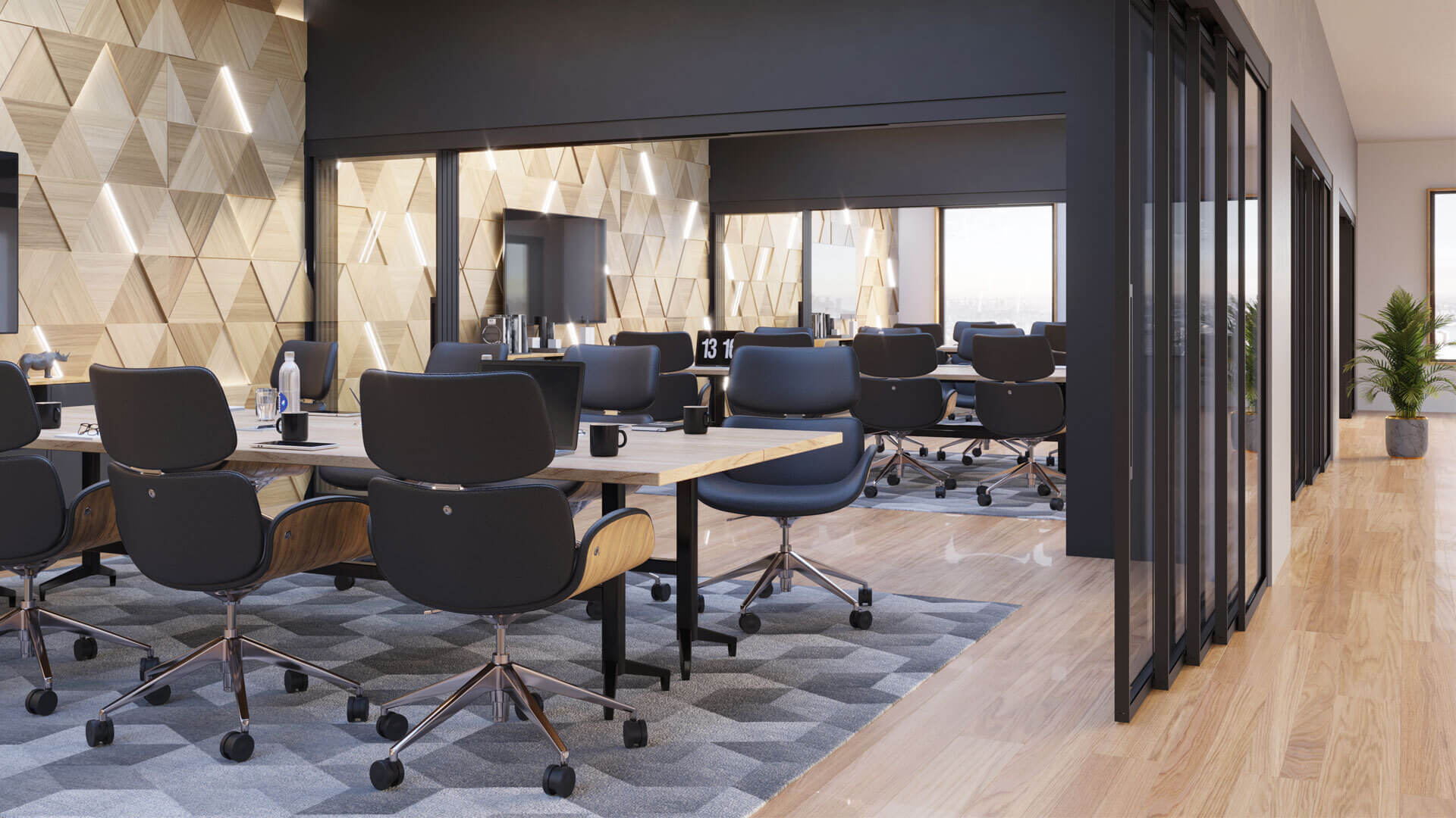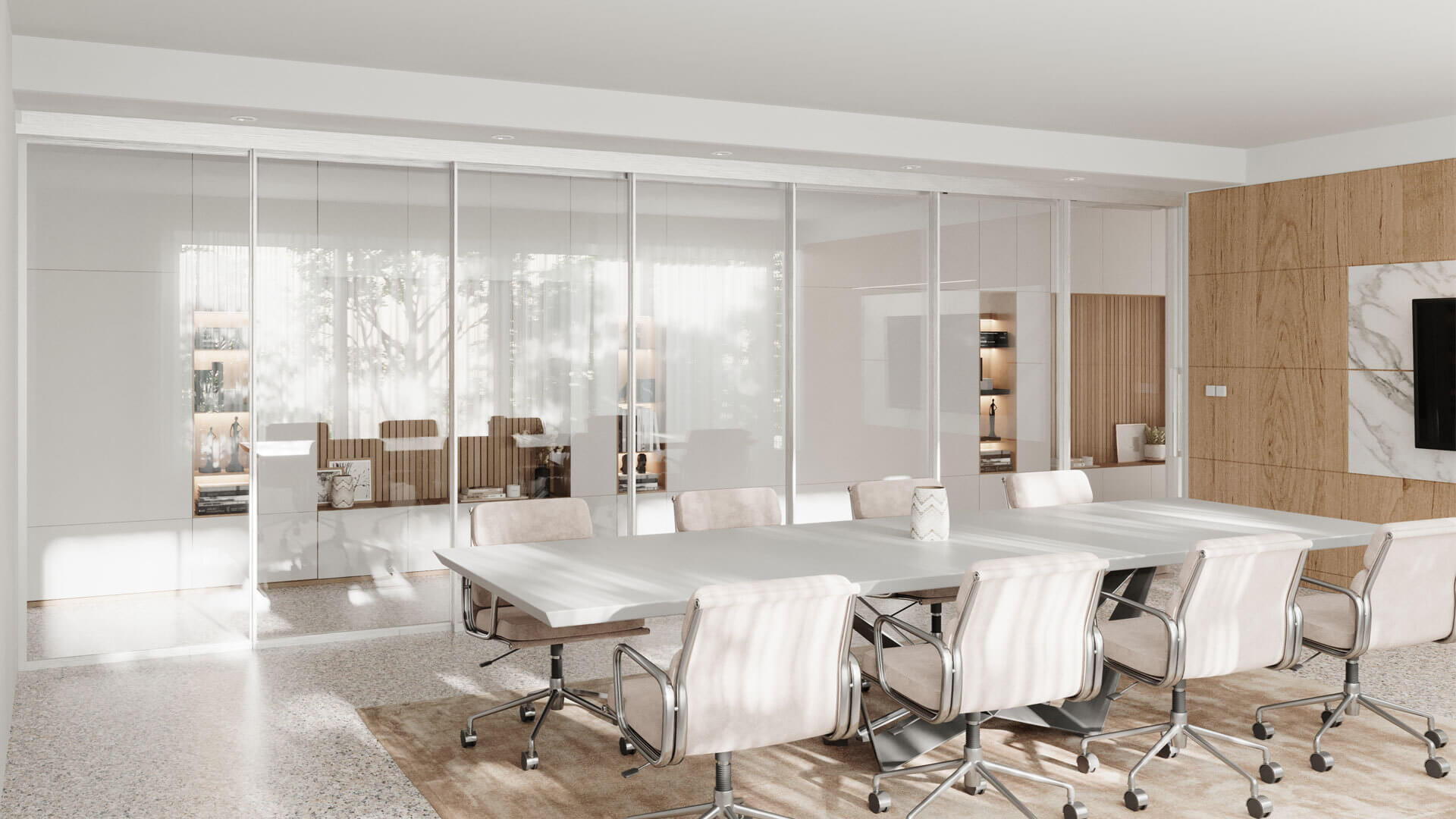 Le système EXPO™ rend n’importe quel espace adaptable et dynamique en un seul clic, permettant de transformer instantanément un espace entièrement ouvert en une zone de réunion. Le système de portes coulissantes accueille des panneaux de verre à cadre simple ou double dotés de seuils tombants, pour une acoustique supérieure, un système de poulies synchronisées motorisées, pour un profil aligné à l’ouverture ou à la fermeture, une poignée intégrée et un look spectaculaire dans votre choix des finis Muraflex.