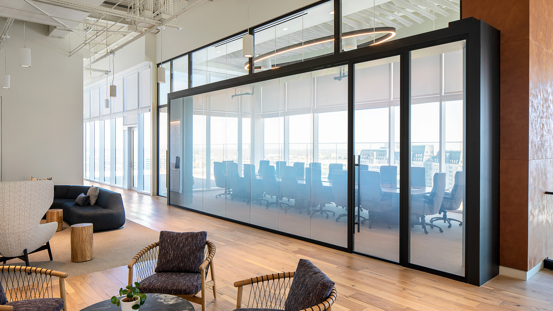 MIMO™ répond à toutes les préférences de design et de performances. En verre ou en panneau solide, MIMO™ est disponible en verre simple centré ou décalé, et en verre double pour une acoustique et des STC supérieurs.